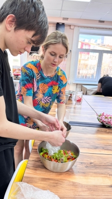 Воспитанники с энтузиазмом взялись за кулинарные эксперименты и порадовали всех вкусными угощениями. На столах появились целых два вида освежающей окрошки, приготовленной с любовью. Также мы смогли насладиться нежной соленой форелью