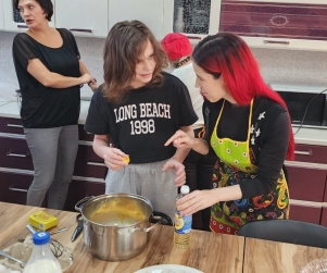На кухне кипела работа: вместе месили тесто, вместе учились печь, вместе смеялись над первыми, не всегда идеальными, но самыми искренними блинчиками. Получился настоящий праздник с теплыми разговорами и морем улыбок.