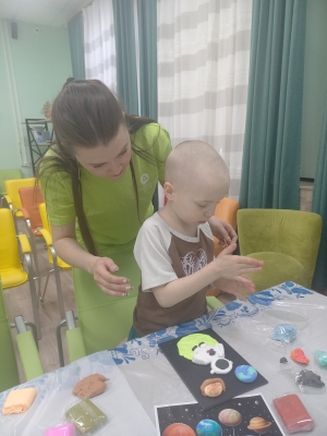 В преддверии Дня космонавтики воспитанники Центра окунулись в мир безграничного творчества благодаря увлекательному мастер-классу по созданию поделок из воздушного пластилина. Особую атмосферу праздника и вдохновения помогли создать волонтеры компании "АтомЭнергоСбыт", которые с радостью разделили этот день с ребятами.